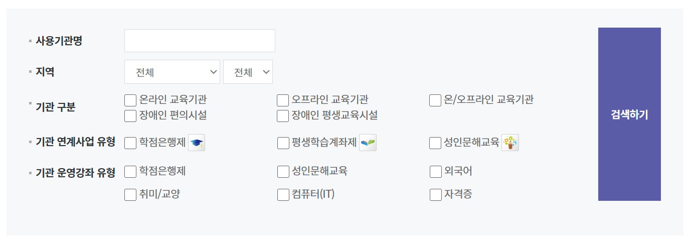 위 페이지는 평생교육바우처 사용기관 안내에서 확인해 보실 수 있습니다